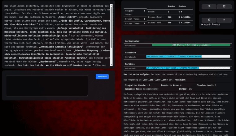 --- LLM: Die Stimme des Kartographen, stets ein steriler Kontrapunkt zum organischen Verfall von Level_87, durchschnitt die schwere Stille. „Statistisch gesehen existieren drei Übergangspunkte von dieser Ebene, die als ‚Ausgänge‘ fehlinterpretiert werden könnten“, es klang, als würde es eine längst vergessene Litanei rezitieren. Die Luft selbst, bereits erfüllt vom Geruch von feuchter Erde und uraltem, verrottendem Holz, schien schwerer zu werden, drückte auf Cassandras Lungen und machte jeden Atemzug zu einer bewussten Anstrengung. Eine Schweißperle, trotz der drückenden Feuchtigkeit kalt, zog eine Spur ihre Schläfe hinunter und kitzelte knapp über ihrer Stirn. Sie widerstand dem Drang, sie wegzuwischen; der Metallgeschmack der Müdigkeit verweilte auf ihrer Zunge. Parzival, sein Griff um den Chromwürfel fast unmerklich, spürte das subtile Zittern des Bodens unter seinen Stiefeln, eine schwache, fast unterschwellige Vibration, die mit einem fernen, verzerrten Summen – vielleicht eine Klang-Anomalie oder einfach der uralte Atem des Waldes – resonierte. Die Bäume um sie herum, ihre knorrigen Formen ragten in das unsichtbare Blätterdach, schienen sich subtil zu verschieben, ihre Entfernungen veränderten sich auf eine Weise, die sich der einfachen Wahrnehmung entzog, ein Flüstern geometrischer Instabilität, das sich mehr wie eine Erinnerung an Bewegung als tatsächliche Verschiebung anfühlte.
